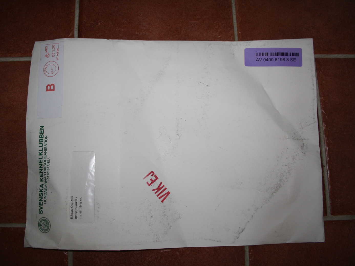 Vi har tidigare föreslagit för SKK att sända diplomen i rulle, är det kostnaden som blir för stor eller varför fortsätter man att sända dem i kuvert? Det är många fler än oss som mottagit ett fult diplom, undrar om ingen annan kontaktar SKK och ber om ett nytt. Vi kommer att reklamera detta diplom, man kan inte behöva betala för ett skrynkligt papper. Posten tar inget ansvar och dessa skrynkliga diplom ger SKK dålig reklam.