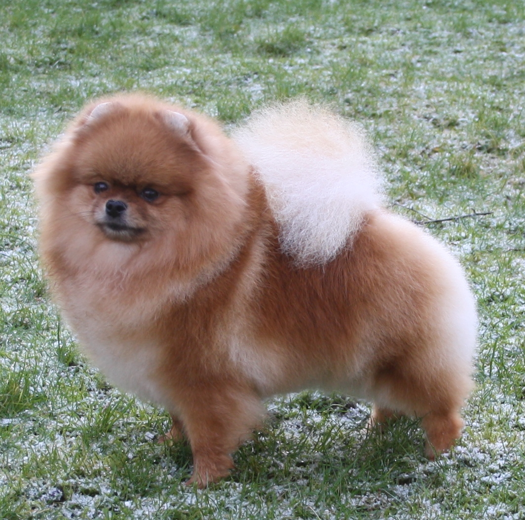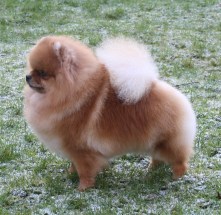 På bilden poserar Ambersom är en vältrimmad Pomeranian. Ibland finns det Pomeranian valpar till salu hos Black Orange’s kennel. Tryck på bilden för större format.