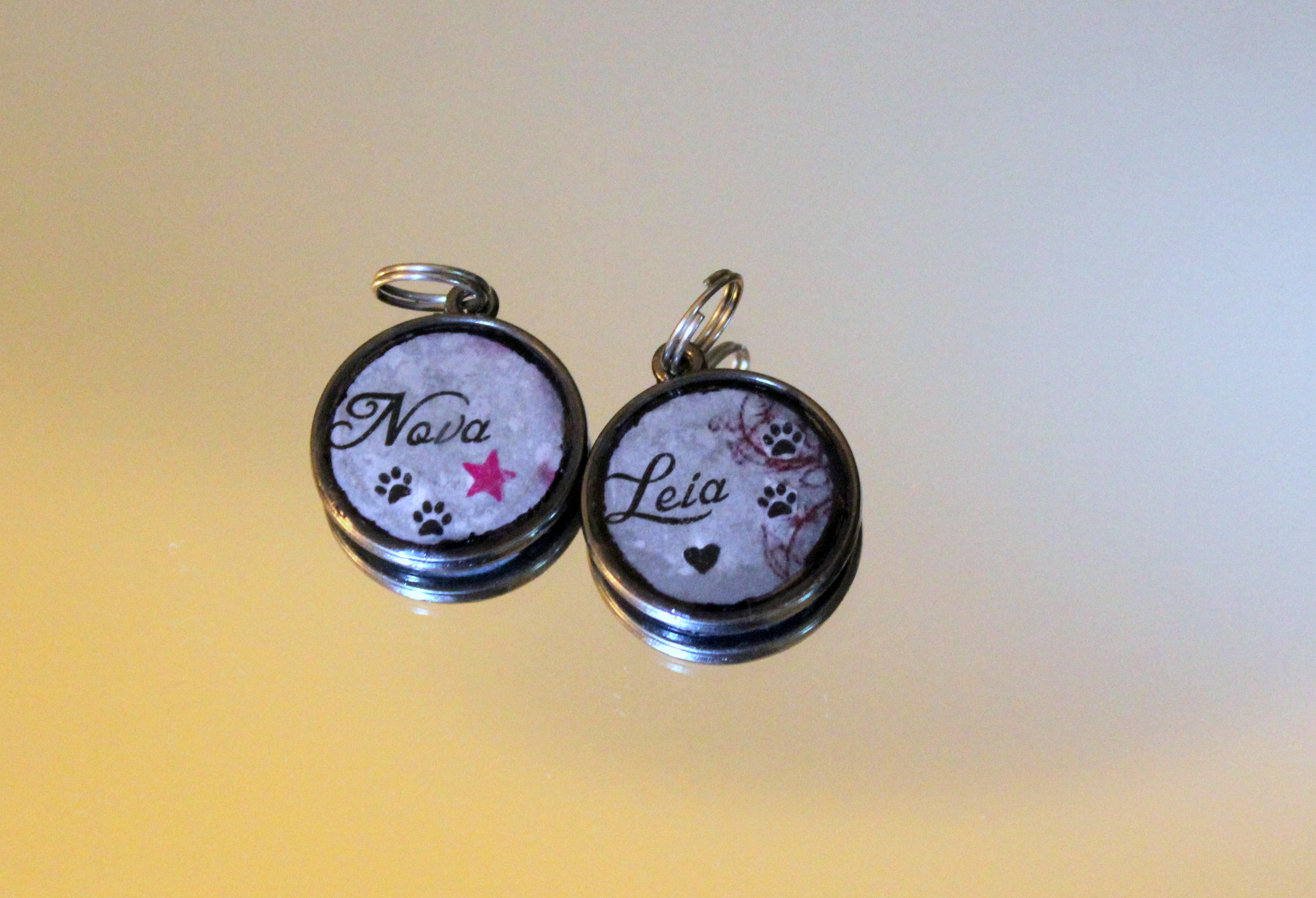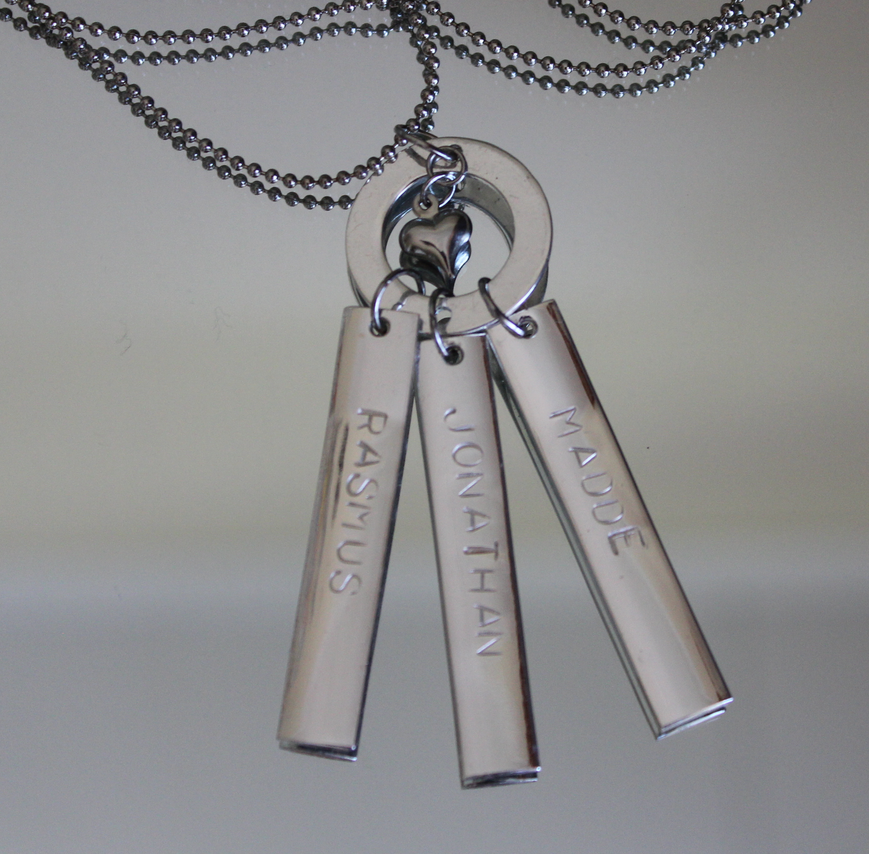 Vi har beställt smycket ovan, kommer att låta gravera in vår ras och älsklingshundens namn samt min älsklings namn på ”taggarna”. Man kan låta fantasin flöda, låta gravera in vilka ord man vill, man kan köpa smycket med bara en ”tagg” eller två eller alla tre, bara att välja själv.