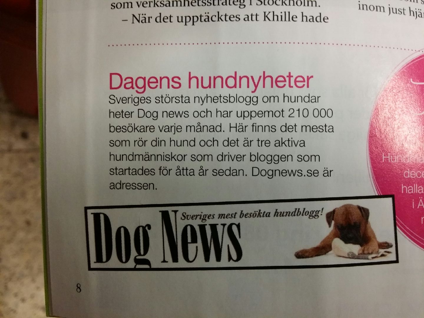 I Expressens nya tidning Din hund som utkom idag finns en notis om bloggen Dog News på sidan 8.