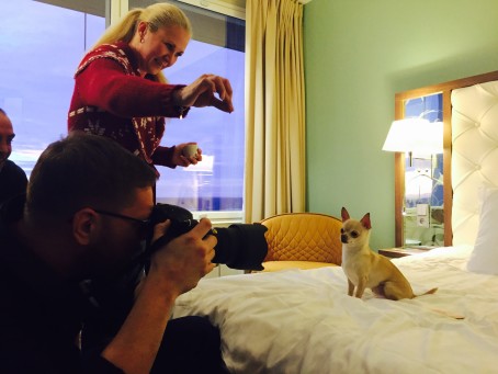 Bildtext: Chihuahuan Prince blir fotograferad av TT Nyhetsbyrån. Matte Cecilia lockar med leverpastej.
