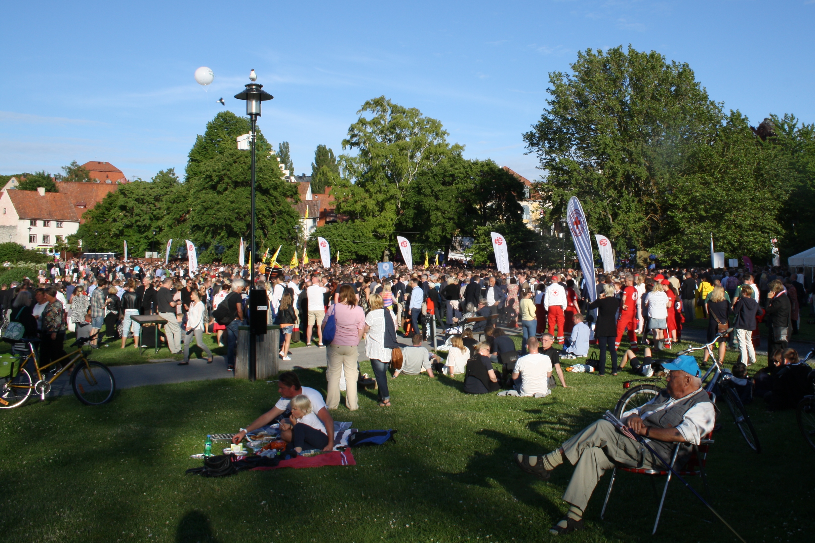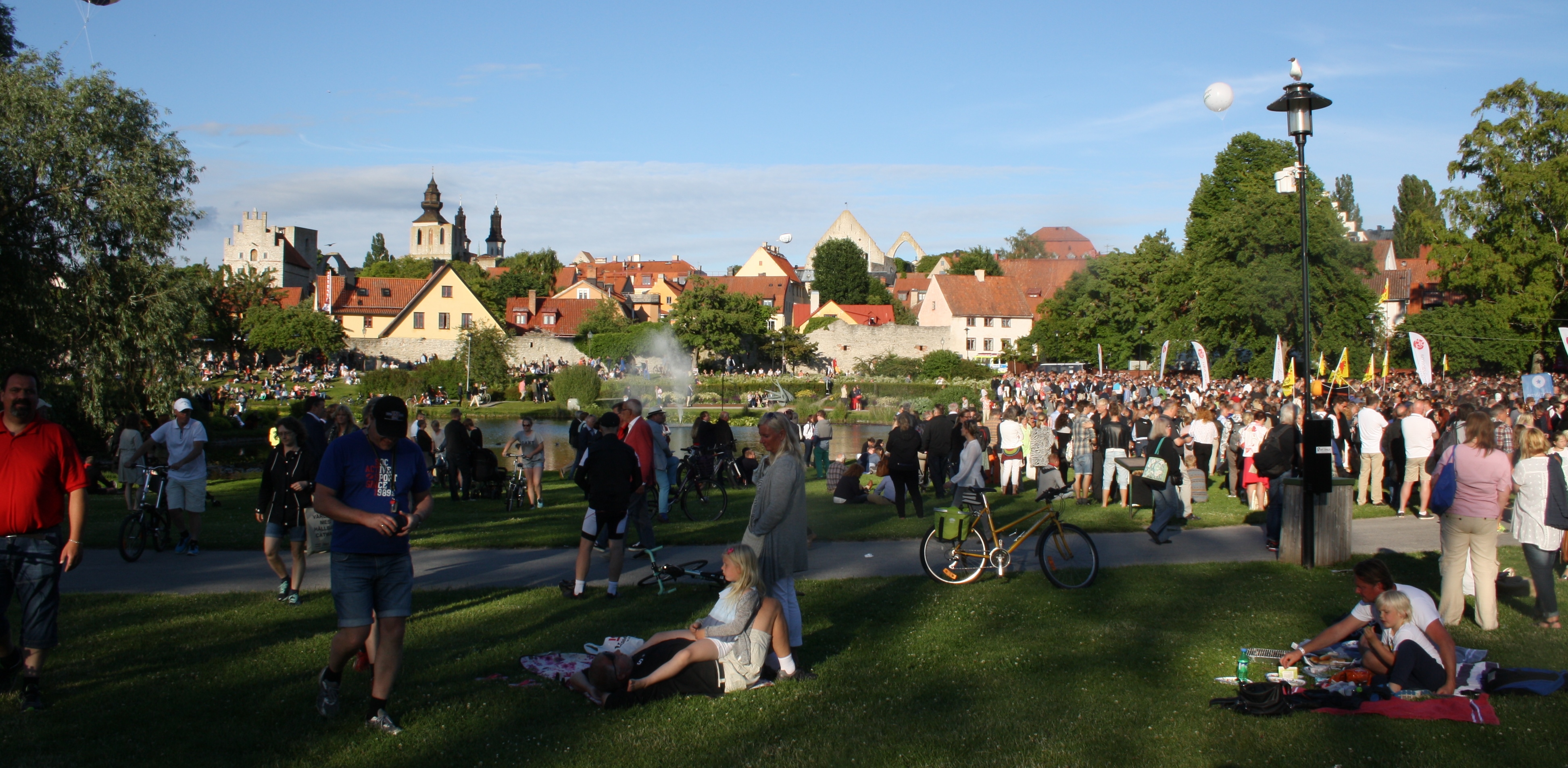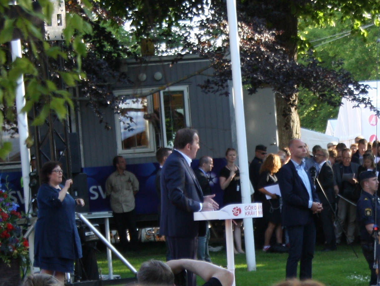 Det var trångt då statsminister Stefan Löven höll sitt tal i Almedalen i kväll…..människor och hundar trängdes vid scenen