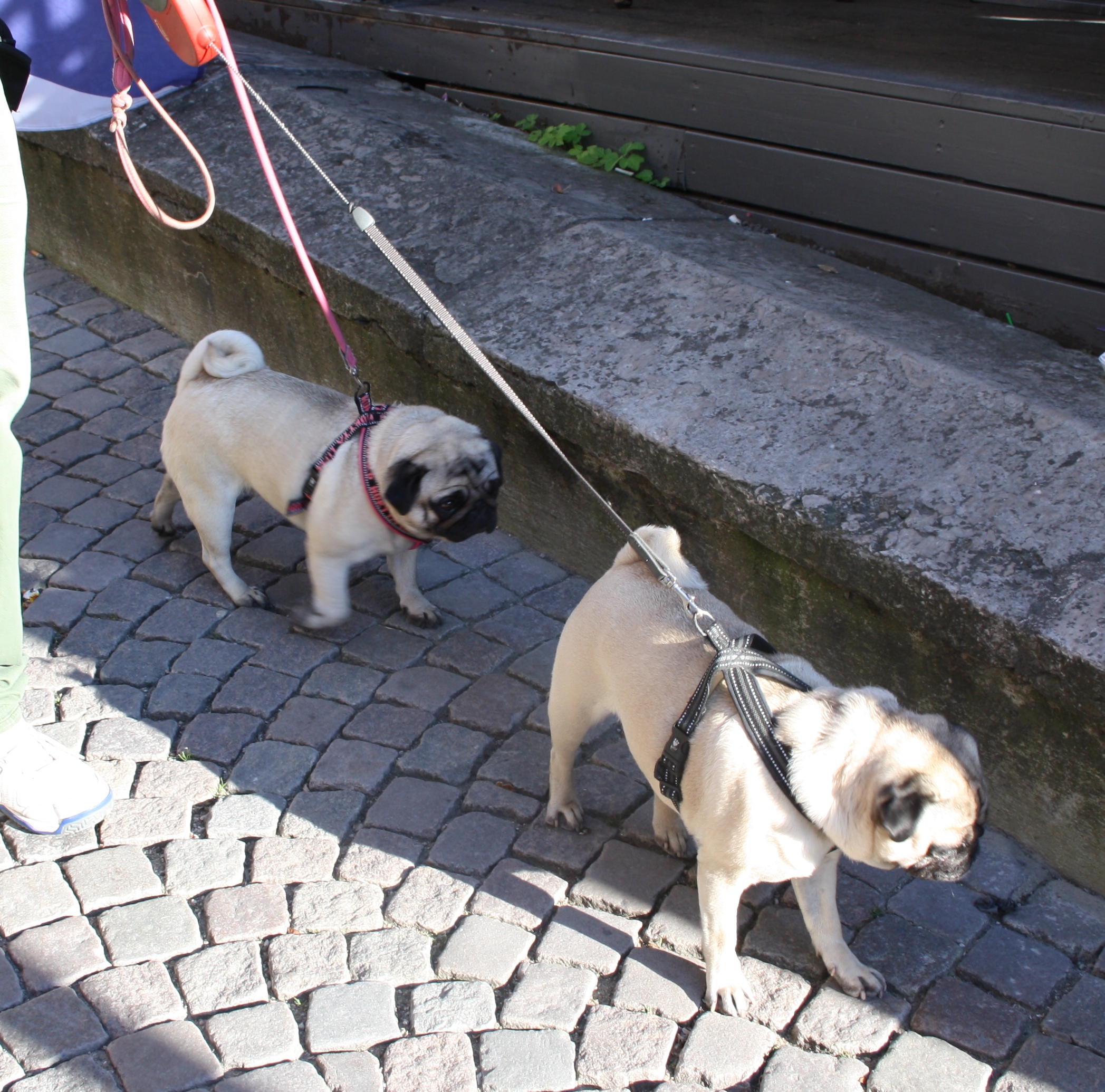 Många hundar låg på gatorna medan deras ägare minglade i vimlet…