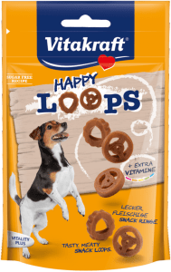 Happy Loops smaskigt läckra köttiga godisringar för alla hundar. Perfekt vid träning men passar också utmärkt till mindre hundraser.
