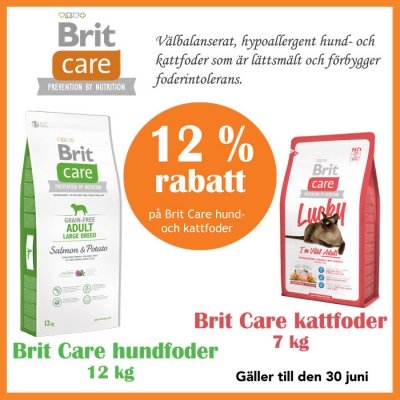 12 % rabatt på Brit Care hund och kattfoder