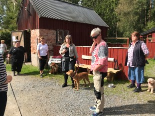 Här håller instruktören på att berätta sina bästa knep om hur man skall jobba med sin hund vid möten mellan andra hundar på tex promenader.