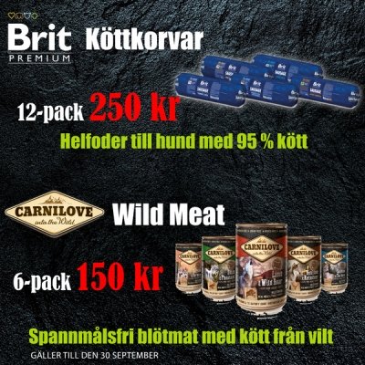 Brit Köttkorvar helfoder till hund 12 pack 250 kr