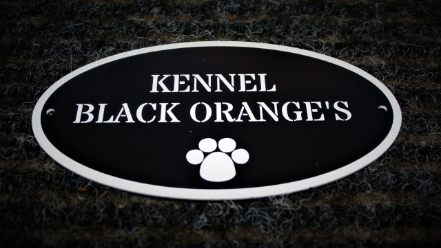 Samma kennel beställde också fina hundskyltar – du kan välja material, text och utformning – väldigt lätt och smidigt att göra själv.