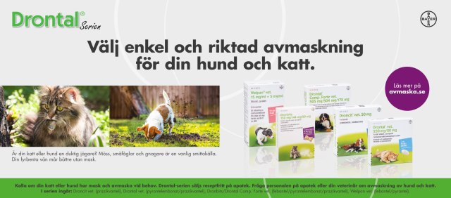 Kolla om din hund och katt har mask och avmaska vid behov. Drontal-serien säljs receptfritt på apotek. Prata med apotekspersonalen eller din veterinär om avmaskning om du har frågor eller är osäker.