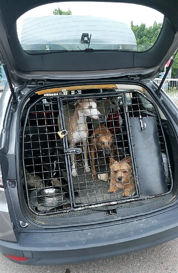 Tryggast är att förvara hunden i en bur som är placerad längst bak i en kombi bakom ett nät eller galler. Man kan också göra som vi och låta hunden sitta i en bur som är väl förankrad på bakbänken i bilen. Tänk på att använda en så luftig bur som möjligt med tanke på den värme och instängdhet som kan uppstå i en bil. Du kan också spänna fast hunden i ett speciellt säkerhetsbälte anpassat för hund.