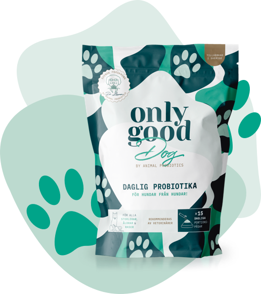 Only Good Dog är att kosttillskott som hjälper till att balansera tarmfloran, gynnar “goda bakterier” och hämmar sjukdomsalstrande bakterier. Tillskott av gynnsamma bakterier kan förbättra immunförsvaret för hundar. Only Good Dog kan ges från avvänjningen och är framförallt bra att ge till valpar fram till 1 års ålder. Även dräktiga och digivande tikar och äldre hundar behöver ett extra intag av Probiotika.