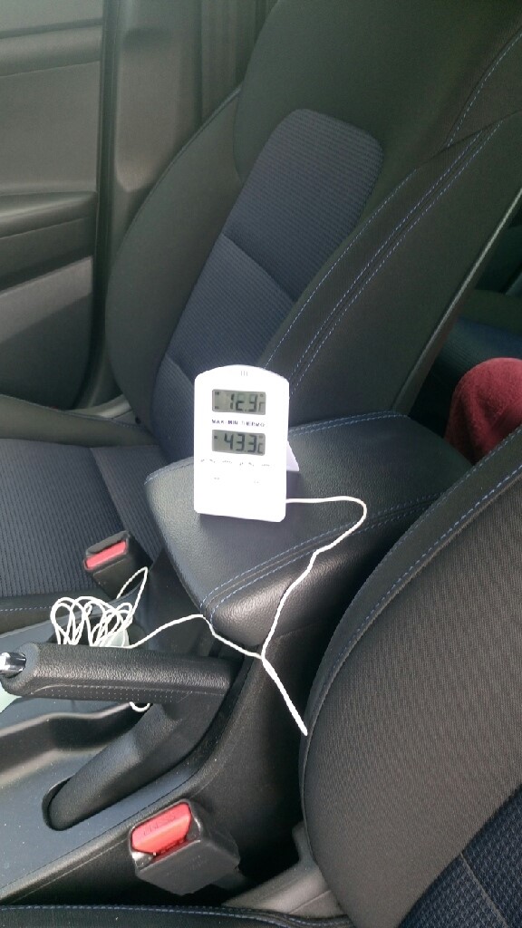 och då vi slutade testet 15.30 var det 42,8 grader varmt inne i bilen.