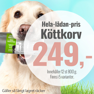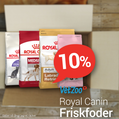 100% färskt godis från Europa!Vetzoo strävar hela tiden efter att presentera spännande och efterfrågade nyheter för att göra kunderna så glada som möjligt. Vetzoo har längre haft stor efterfrågan på bl.a. kyckling- och ankfileer från Europa, och kan nu äntligen presentera Fresco! Fresco är det perfekta alternativet för dig som gärna undviker kyckling och anka från Asien. I serien finns så kallade Superfood-varianter, träningsgodis, snacks i form av bl.a. kycklingfileer samt luft-och frystorkat hundfoder. Allt är helt naturligt, utan spannmål och tillverkat i Tyskland, där alla råvaror som används också kommer från Tyskland samt är livsmedelsklassade. Nedan alla kampanjer hos Vetzoo 10% rabatt på Royal Canin friskfoder 15% rabatt på Hill’s Hund- och kattfoder 10% rabatt på Brit Premium 25% rabatt på hela Esperee sortimentet 15% rabatt på Doggy Professional Hela-lådan-pris köttkorv 249 kronor 20% rabatt på hela Urine Off sortimentet Köp valfri DentaLife för 20 kronor 15 % rabatt på Vitakraft så länge lagret räcker Hundmat FourFriends 3 kg för 99 kronor 499 kronor styck för alla ProPlan 12-14 kg påsar 10 % rabatt på Taste Of The Wild 100 rabatt 15% rabatt på alla Pedigree DentaStix 10 % rabatt på K9