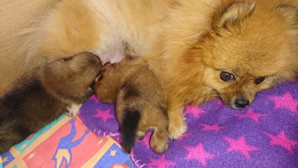 Vid första måltiden efter att Bonnie hade fött sina valpar bjöd vi henne på en portion uppblött hundfoder och strödde en påse Only Good Dog probiotika över. Bonnie åt med god aptit, hon åt upp hela portionen. Hon har fått ett sticks med Only Good Dog varje morgon sedan förlossningen. Bonnies mage har fungerat fint, hon har inte haft lös avföring eller mått dåligt en enda dag. Hon har god aptit, dricker och har haft tillräckligt med mjölk till valparna. Valparnas magar har fungerat och de har diat och sovit.