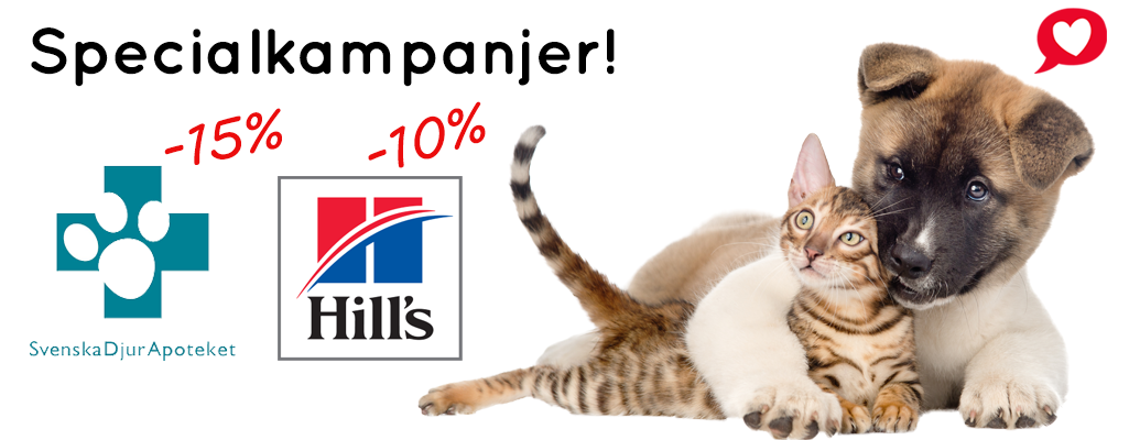 | Missa inte veckans specialkampanjer hos VetZoo! Just nu får du 15% på allt från Svenska Djurapoteket* och 10% på allt från Hill’s! Nu kan du fynda både tillskott och kvalitetsfoder till fantastiska priser! *Gäller ej silveröverdrag till tält eller Kronch Pemmikan Energikaka |