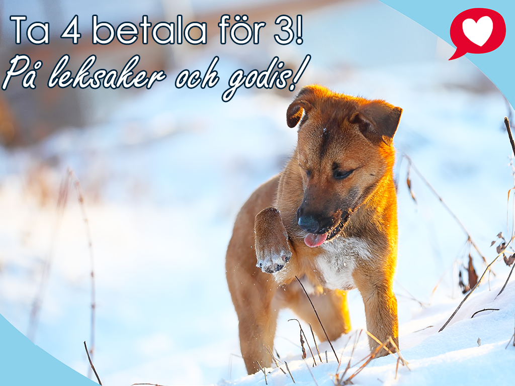 Vi bjuder på den billigaste, du kan blanda fritt mellan leksaker och godis och även bland produkter till olika husdjur. Erbjudandet gäller endast online och går inte att kombinera med andra kampanjer