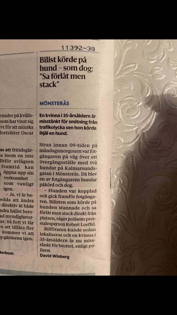 Vilket fantastiskt rättssystem vi har i Sverige!!!!!Att köra ihjäl en hund, dessutom på ett övergångsställe och sedan smita från platsen! Då har du inte begått något brott???Förundersökning inleds inte fick jag från polismyndigheten idag.Att förlora sin hund på detta sätt….. det va som. Att hon körde ihjäl mitt barn! Har aldrig skrikit och gråtit så mycket i hela mitt liv. Och hon går fri, utan att ens behöva betala någon ersättning?Jag finner inga ord, gråt varvas nu med fruktansvärd ilska