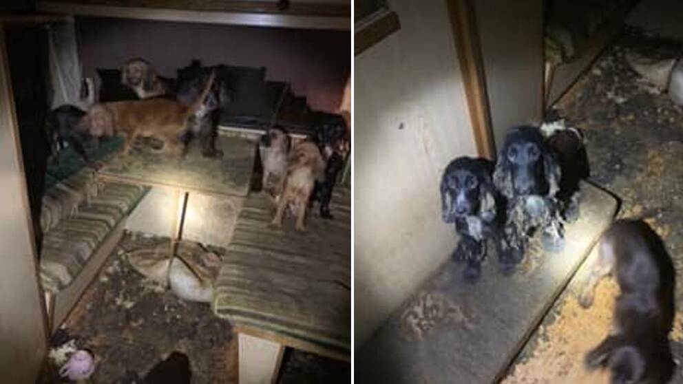 Hundarna som omhändertogs var blandraser av cockerspaniel, mopskorsningar och grand danois. Alla hundar levde under dåliga sanitära förhållanden.