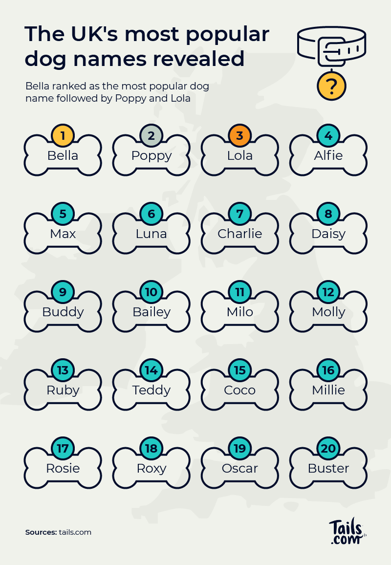 För att hjälpa dig att bestämma det perfekta namnet för din hund har teamet på Tails.com gjort en statistik där de avslöjar de mest populära namnen i Storbritannien just nu.