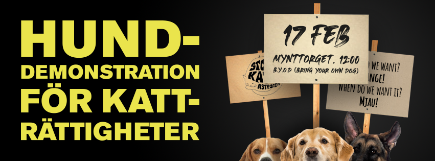 Nu sker sista rycket i påverkansarbetet och därför hålls en hunddemonstration nu på torsdag den 17 februari 2022. Hundarna mobiliserar för att stå upp för kattliga rättigheter och för att skälla på politikerna en sista gång.