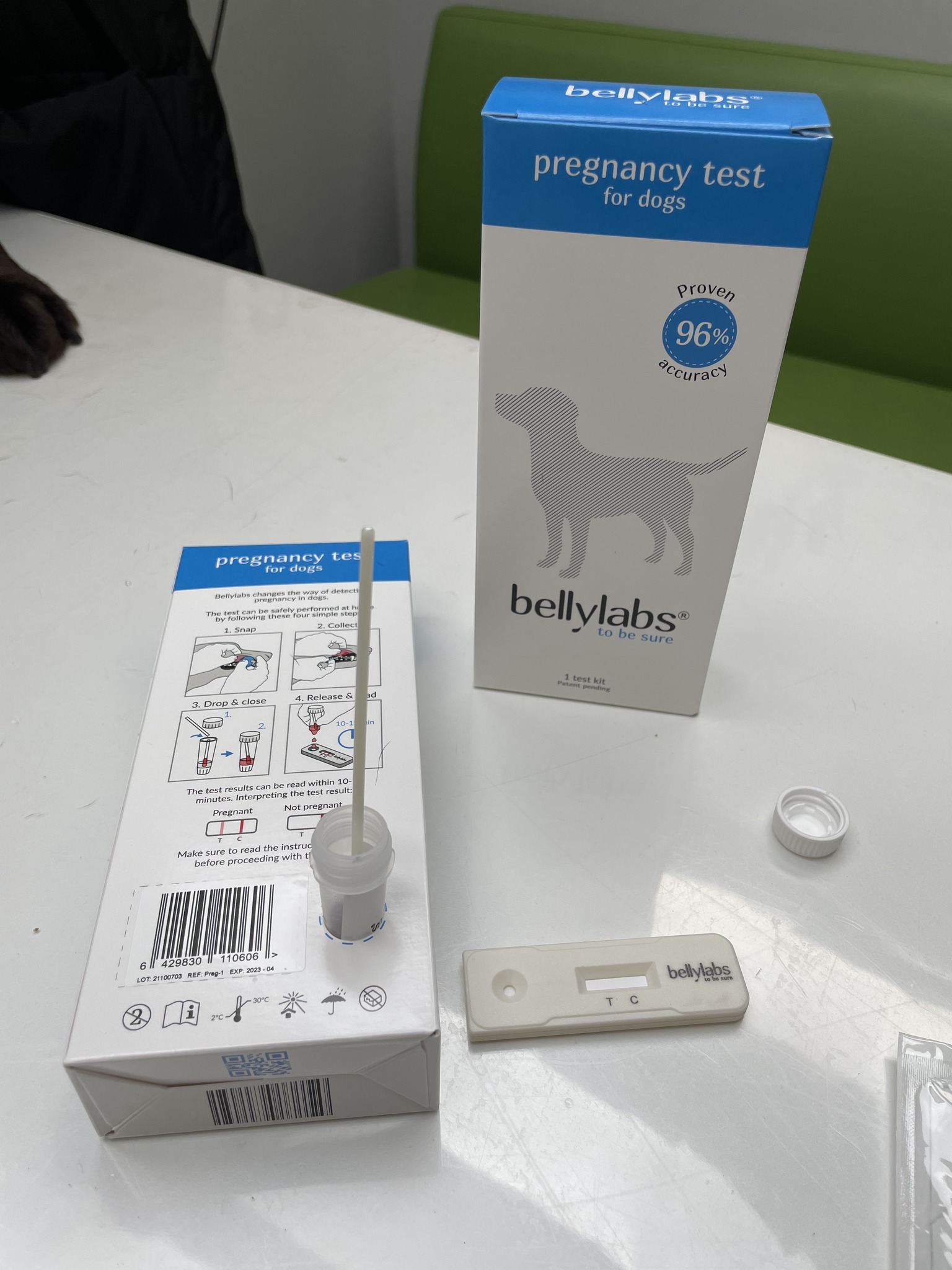 Nu kan du köpa dräktighetstest Bellylabs till tik hos VetZoo här. Testet kan lätt göras hemma och är tillförlitligt. Testet görs från dygn 28 och har en 96% säkerhet.