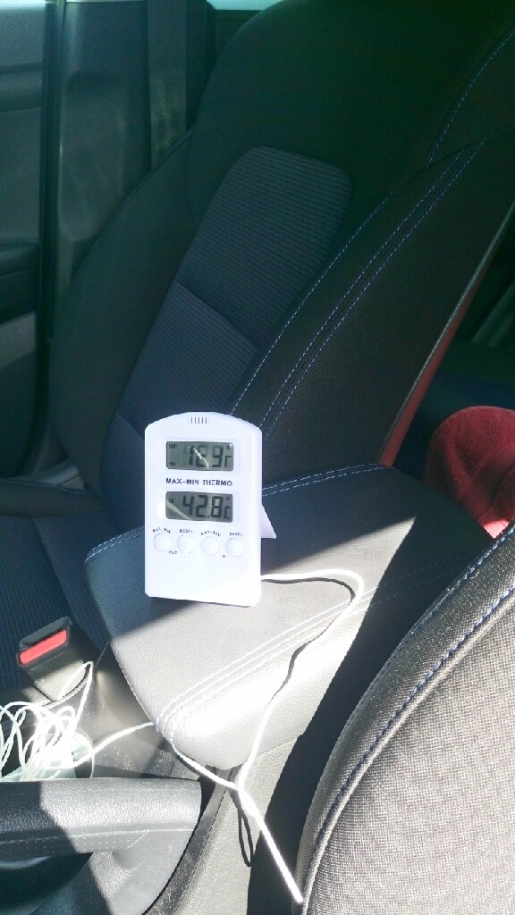 och då vi slutade testet 15.30 var det 42,8 grader varmt inne i bilen.
