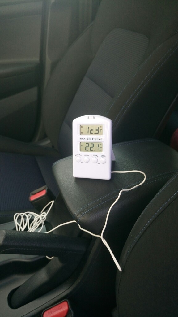 Så även om det bara är 20 grader ute och bilen står i halvsol så blir det fruktansvärt varmt inne i bilen. Bilen vi gjorde testet i hade tonade rutor bak.