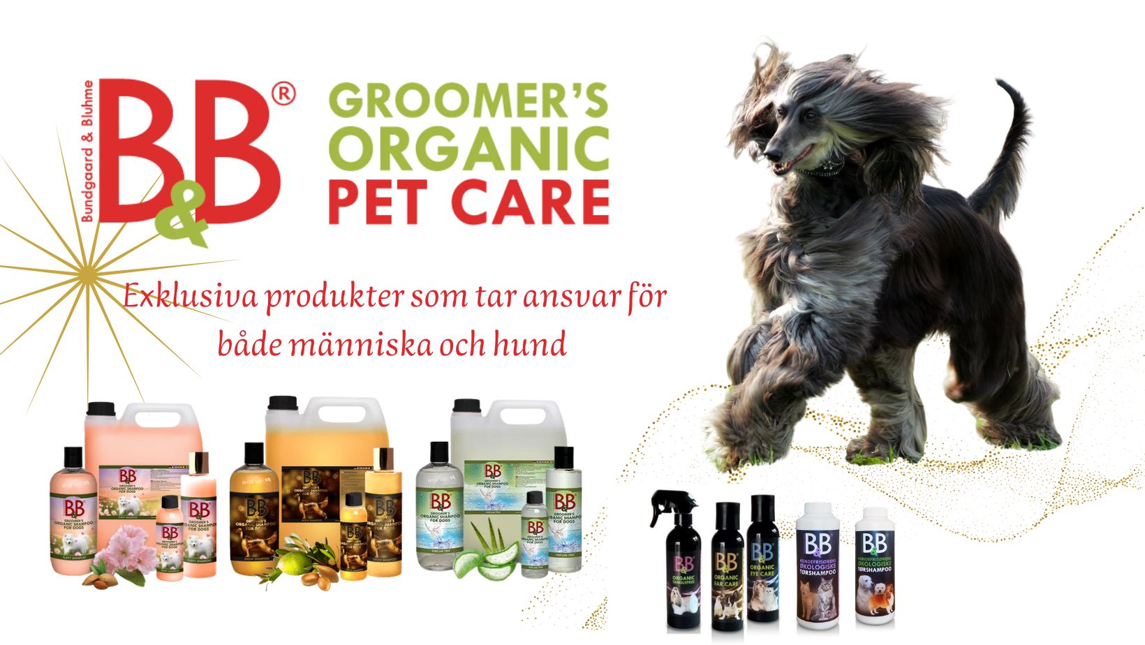 B&Bs Päls och Hudvårdsserie är framtagen av hundfrisörer som saknade produkter som var milda för både dem själva och hundarna, men ändå uppfyller de höga krav som en hundfrisör ställer på produkterna man dagligen arbetar med. Resultatet blev B&B päls och hudvårdsserie. Läs mer om B&B päls och hudvårdsserie här