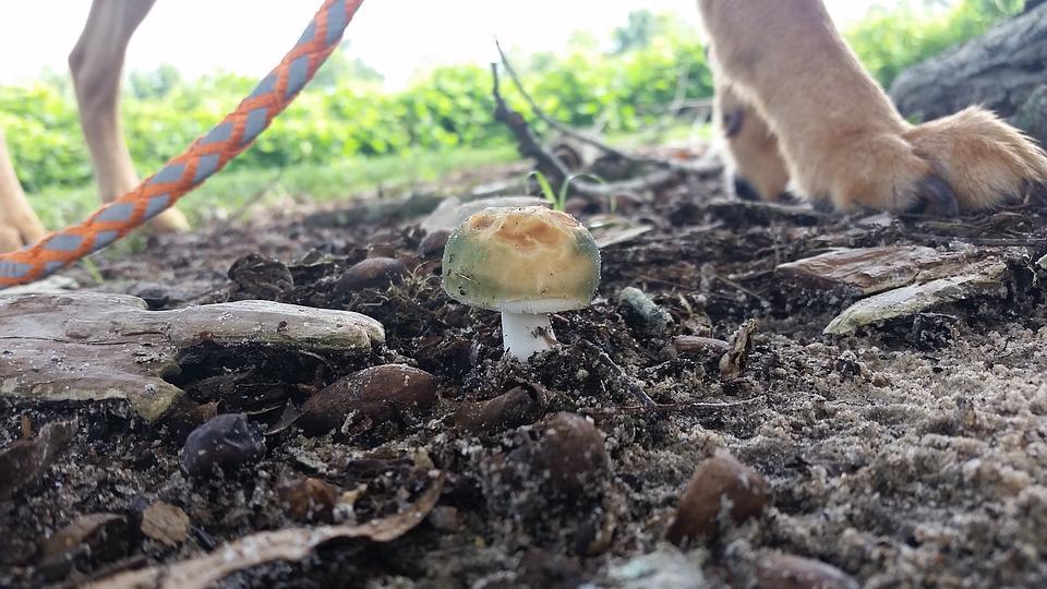 Efter regn kommer svamp, just nu poppar det upp svampar ur gräsmattan lite varstans i trädgården. SE UPP – hundar äter gärna svampar och varje år dör det hundar som blivit förgiftade av svamp.