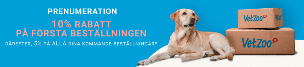 Prenumeration – 10% rabatt på första beställningen därefter 5% rabatt på alla dina kommande beställningar hos VetZoo