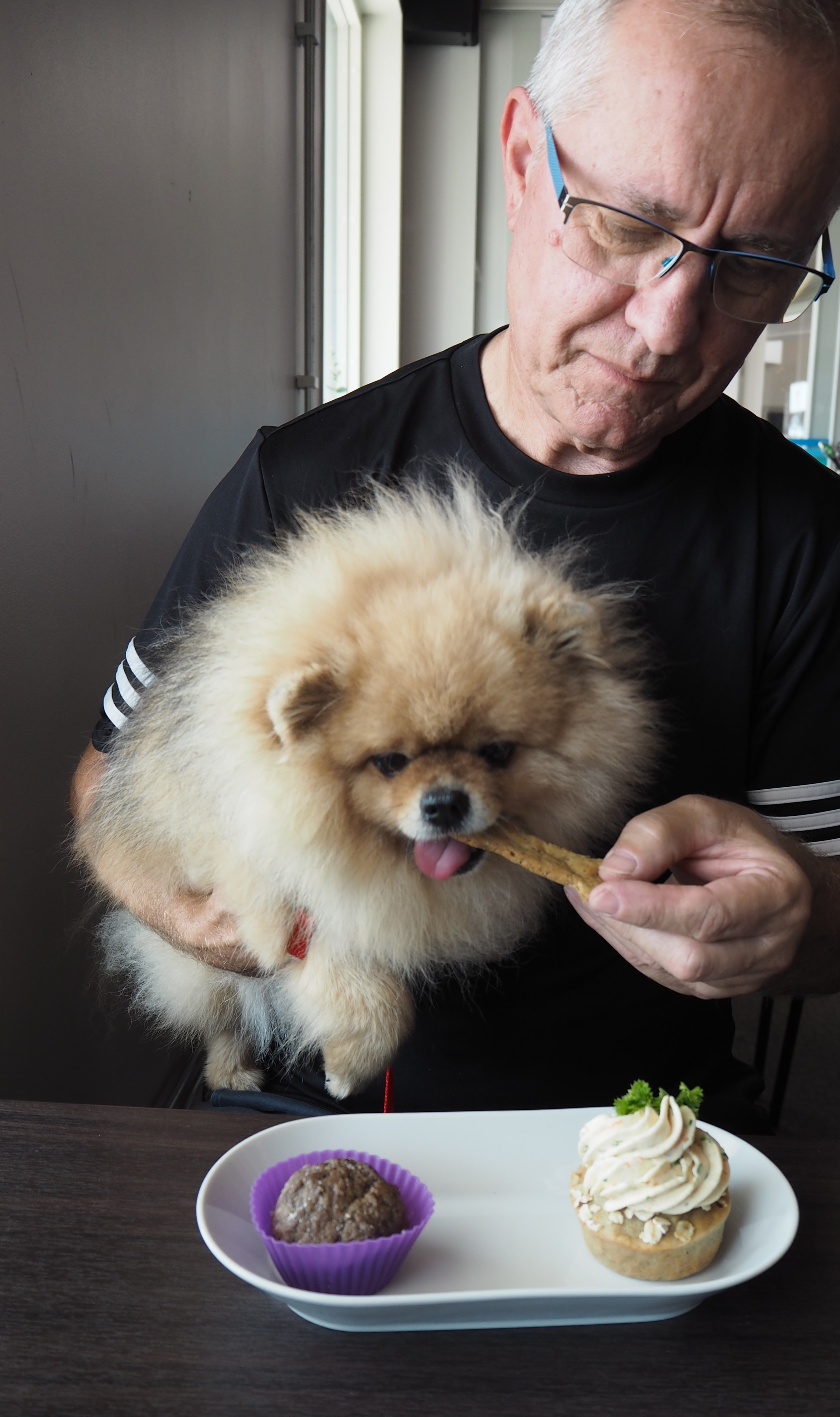 Elsa, födelsedagslabradoren, kommer moderiktigt sent. Ettore, en annan Jack Russell som brukar skälla på större hundar, hålls på säkert avstånd av sin ägare. Alice Mazzetti, som räddade Elsa från en papperskorg när hon bara var 10 dagar gammal, sa att hon ville göra sin första födelsedag speciell. ”Elsa är som en dotter”, säger Mazzetti till Guardian. ”Den här restaurangen är en genialisk idé. Hundar är en så viktig del av våra liv nu och därför är det viktigt att ha sådana här platser där vi kan komma och dela en omhuldad stund.”