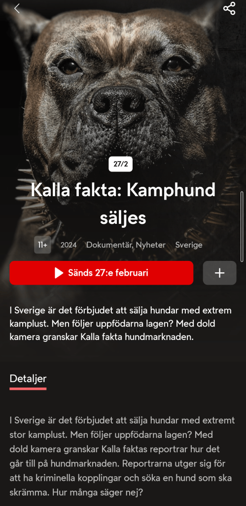 Titta på programmet Kalla Fakta Kamphund säljes här på TV4 play