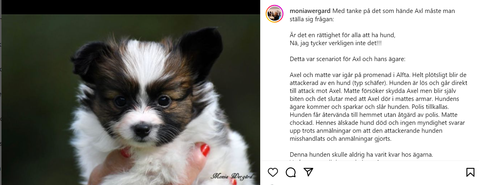 Dela gärna inlägget, något måste hända och det NU, skriver uppfödare Monia Wergård på sin instagram.