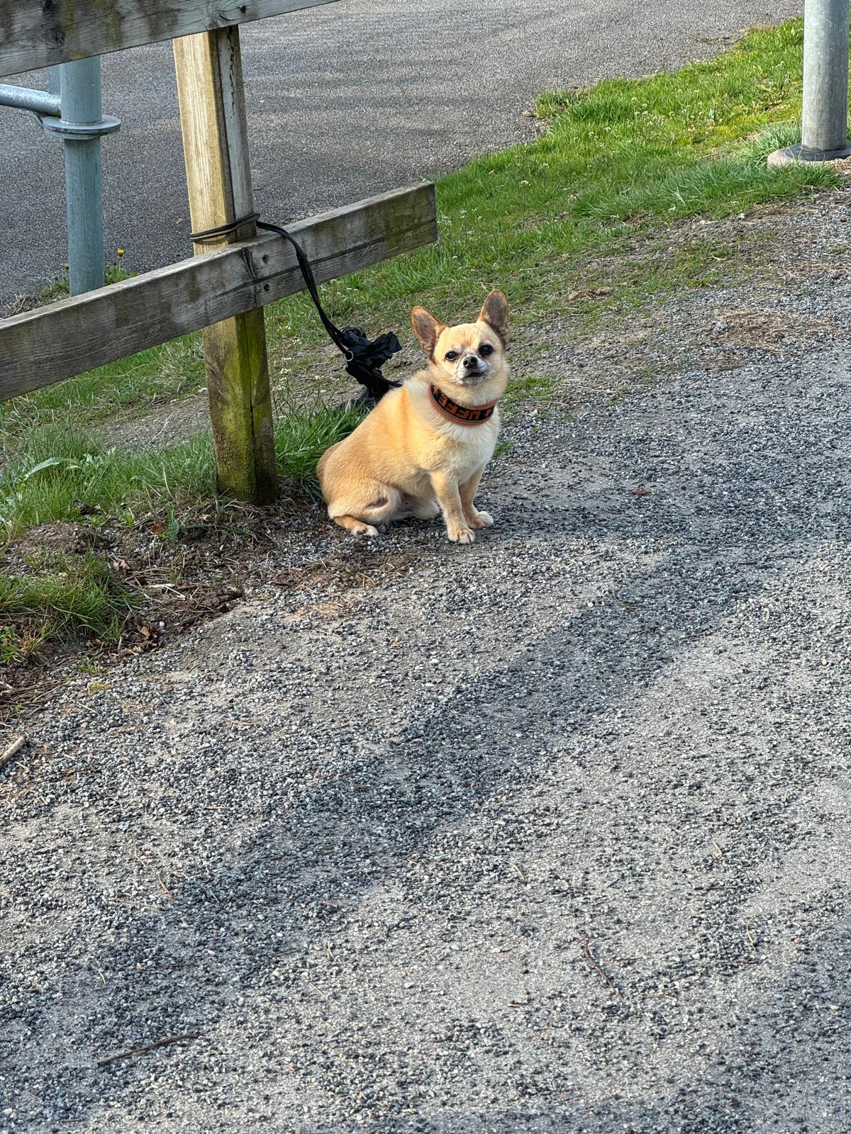 Denna lilla hund satt ensam uppbunden i ett villakvarter häromdagen medan ägaren troligtvis gjorde ett ärende i närheten.