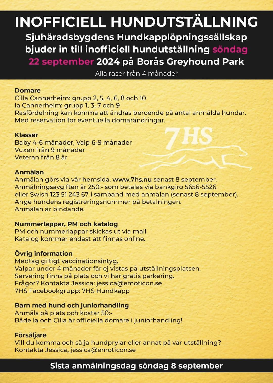 Inofficiell hundutställning 22 september 2024 på Borås Greyhound Park – alla raser från 4 månader