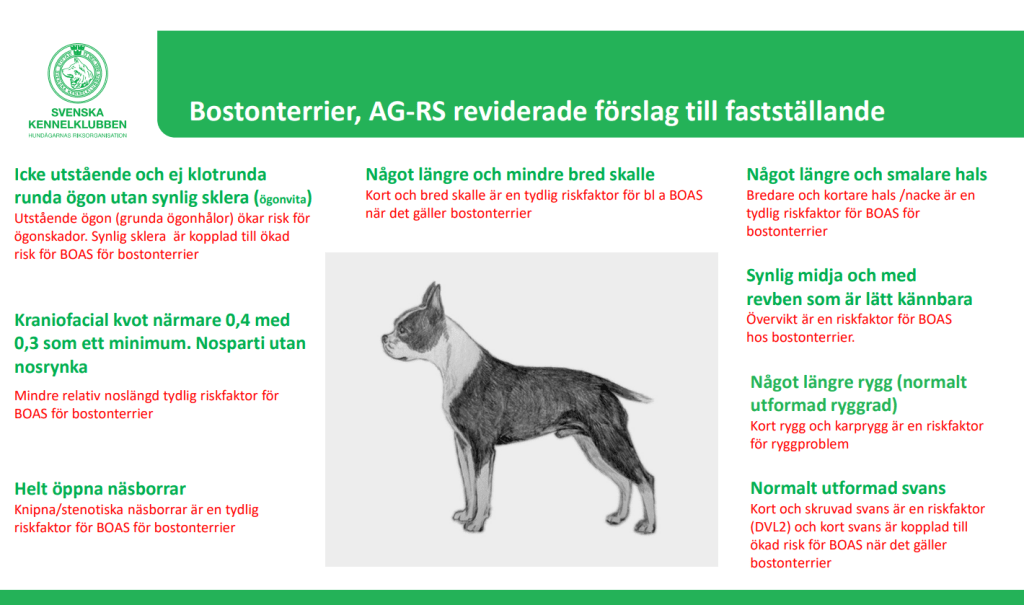 De fokusraser som målbilderna gäller är bostonterrier, engelsk bulldogg, fransk bulldogg och mops. Målbilderna, som har reviderats något efter möten med de berörda klubbarna, diskuterades och fastställdes vid Centralstyrelsens möte den 12 februari.