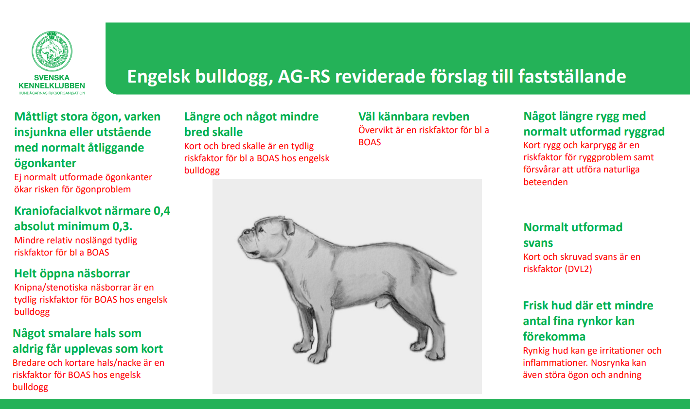 Vad gäller frågan om respektive rasstandard vill SKK passa på att påpeka att det endast är hundrasens ursprungsland som kan göra ändringar i rasstandarden.