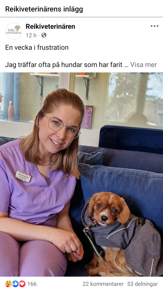 Reikiveterinären uttrycker sin djupa frustration och sorg över den situation som många hundar befinner sig i idag. Hen påpekar att det finns en alarmerande trend med hundar som har blivit illa behandlade och ständigt flyttats mellan olika ägare. Många av dessa hundar, särskilt unga, har varit utsatta för oseriösa ”uppfödare” som ser hundarna som enbart en ekonomisk tillgång, snarare än som levande varelser med känslor och behov.