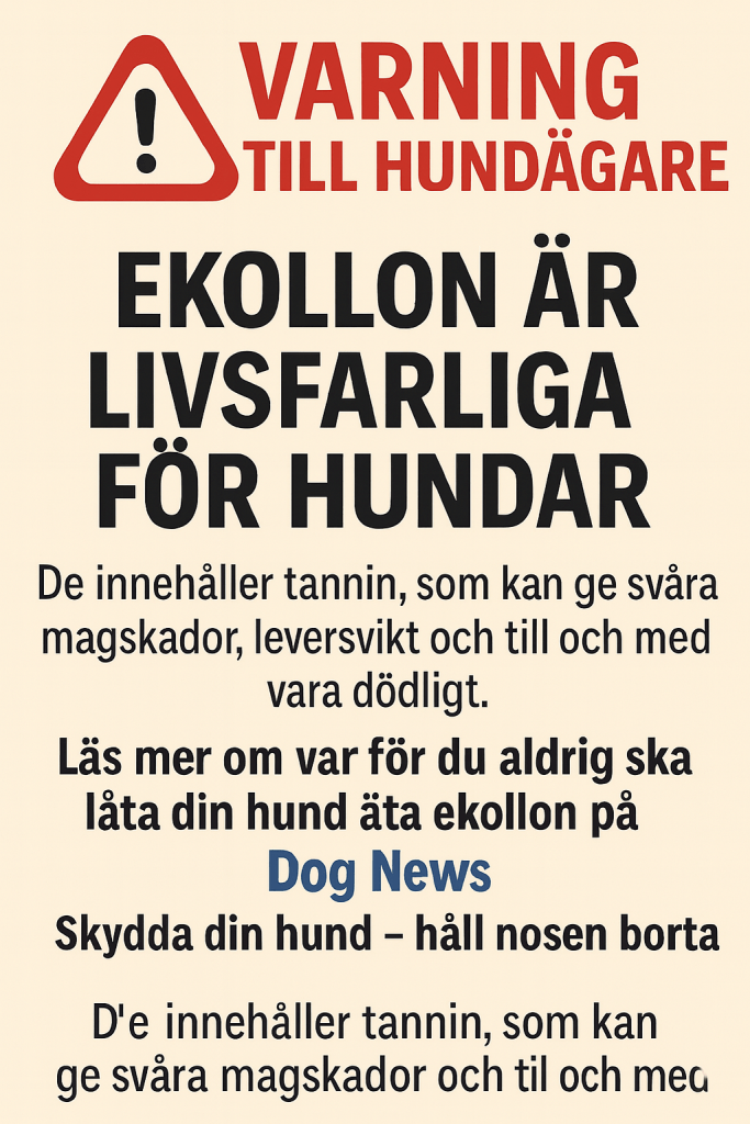 Hösten är här och med den faller ekollonen i mängder från träden. Många hundar tycker att ekollon och kastanjer är spännande att leka med – och tyvärr också att äta. Men du som hundägare måste vara medveten om att ekollon är mycket giftiga för hundar och kan orsaka allvarliga, i värsta fall dödliga, skador.