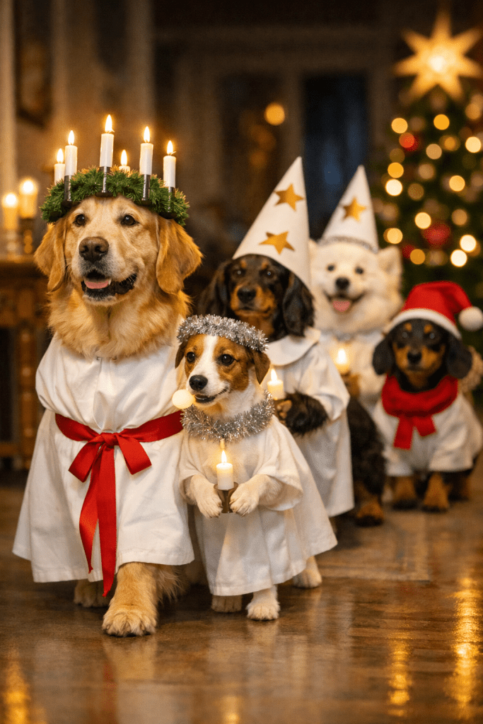 När vi tänder ljus och dukar fram juligt fika är det lätt att glömma att våra fyrbenta familjemedlemmar upplever lucia på sitt sätt.