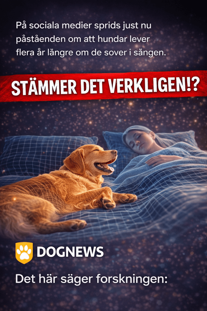 På sociala medier sprids just nu inlägg som påstår att hundar som sover i ägarens säng lever fyra till sex år längre än andra hundar. Inläggen får stor spridning – och lockar många hundägare med löften om ett längre och friskare liv för deras hund.