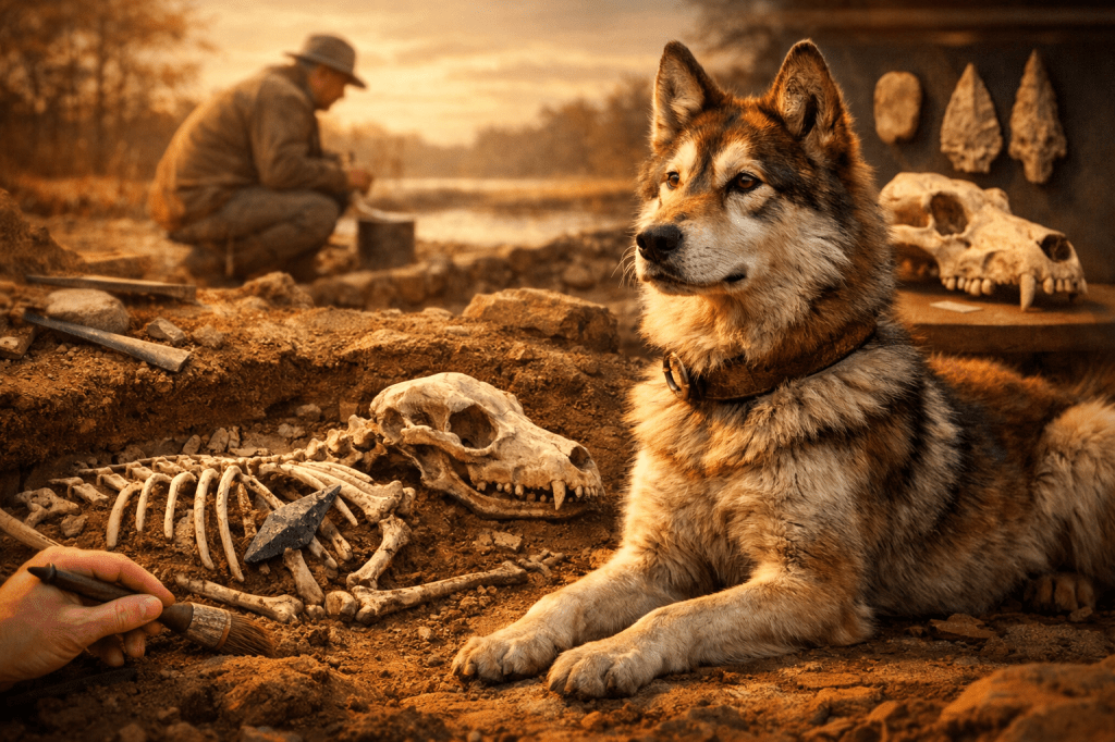 Arkeologer tror att hunden levde för flera tusen år sedan, i en tid då människor levde nära naturen och hundar spelade en viktig roll i vardagen – troligen både som jaktkamrater och sällskap.